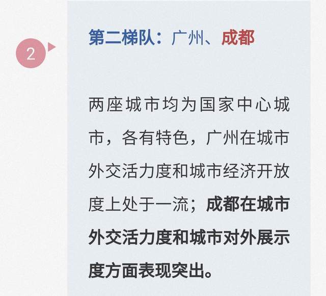 这四个城市,不只是交通枢纽,更是我国对外交往的桥头堡,参考消息发布《中国城市对外交往影响力分析报告(2022)》表明,上海与北京处于第一梯队,广州和成都紧跟其后处在第二梯队。