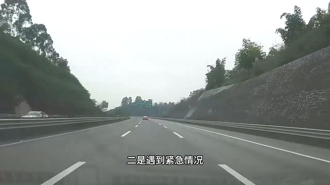 比如说方才,应急车道那儿停着一辆货车,大型货车刹车避让之后还始终踩着刹车,致使让人难以弄清楚其意图。在这个时候最好是变道至与它隔开一条车道的左侧车道,尽可能地离它远一些。大型货车盲区大,驾驶座位置高,它有可能提前察觉到了我们看不到的风险,保持横向距离便是给自己留出安全空间。