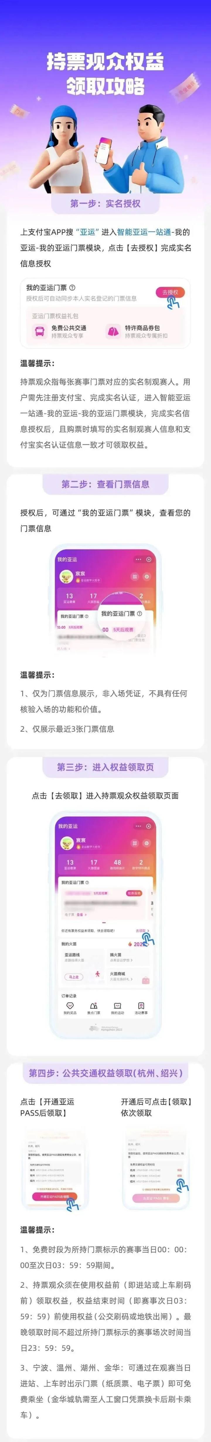 拥有杭州亚运会赛事门票的那些观众,在比赛当日能够免费乘坐地铁以及公交。你得先于支付宝当中搜索“亚运”,而后进入智能亚运一站通,接着寻找到“我的亚运”里面的门票模块,在完成授权之后领取权益。