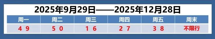 这个周期恰好涵盖国庆假期前后时段,9月30日周二限行5和0 ,10月9日周四恢复上班后限行2和7 ,10月10日周五限行3和8。天津交管特意提示,限行轮换是以十三周作为一个完整周期的,别按照月份去记不然容易记混。北京早在2020年就已经从“周轮换”转变为“季轮换”了,此次轮换也是依照季度执行的常规举措。