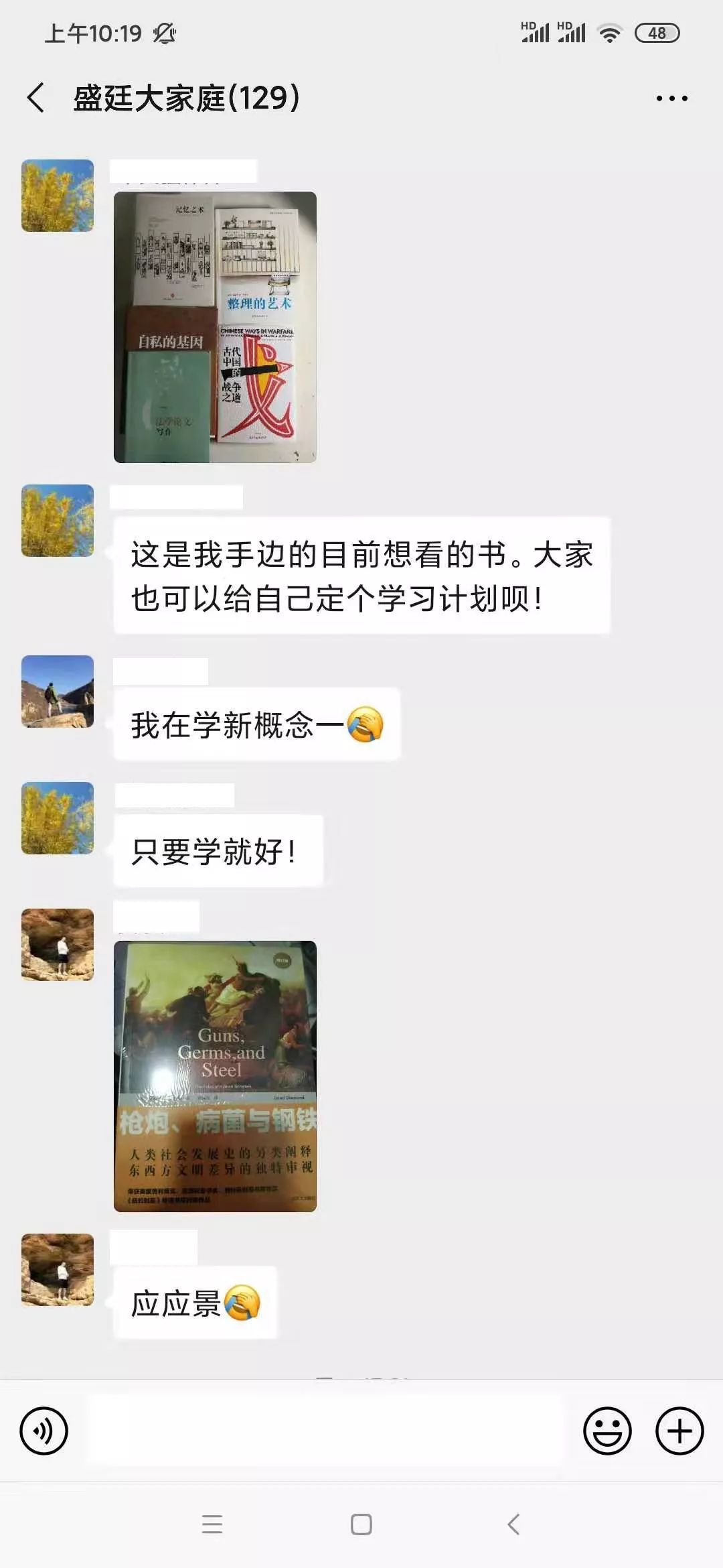 读书已非仅属一人之举,经由分享以及讨论滋生出了让阅读产生化学反应的情况。有人于群里抛出问题:“传染病防治法针对公民个人权利的限制界限处于何方?”此问即刻引发了一场专业探讨。另外有人在读完《枪炮、病菌与钢铁》这本书之后,发起了关乎人类文明与传染病两者关系的深度交流。