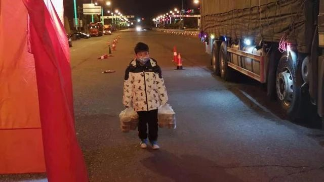 某个深夜,是二零二零年二月,在浙江的某一个检查站,有工作人员正在寒风当中执勤。就在这个时候,黑夜里走来了一个小男孩,他有十多岁,手里拎着两大袋夜宵,他瘦小的身材因为沉重的袋子被压得摇摇晃晃的。他倔强地一步步艰难地挪到检查站,放下东西之后就跑掉了。工作人员追着去问他的名字,他只是回头笑了笑。连续有好几天,他都准时出现,大家只能称呼他为“寒夜里最暖的仔”。