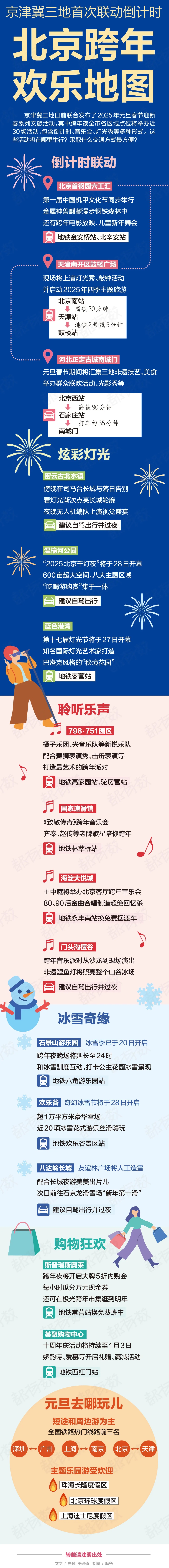 12月31日晚上,北京存在将近30个跨年活动同步开展,首钢园推出了特色活动,古北水镇推出了特色活动,八达岭长城推出了特色活动,通州万象汇推出了特色活动,798园区也推出了特色活动。2025北京新年倒计时于首钢园举行,现场会依据人流车流实施临时管控。