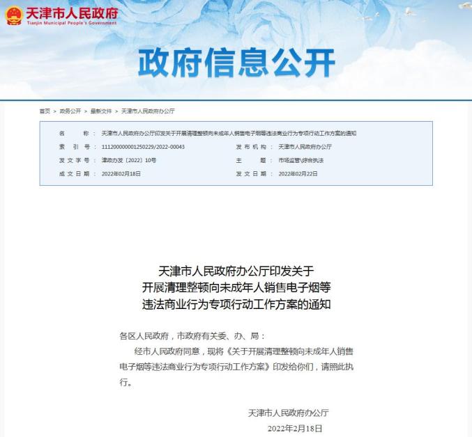 天津市政府办公厅发出通知,开启清理整顿针对未成年人售卖电子烟等违法商业行为的专项行动。教育部门深入查访中小学校、幼儿园,发现安全管理方面存在3900余个隐患,并且已经及时督促整改落到位了,如此守护校园安全。