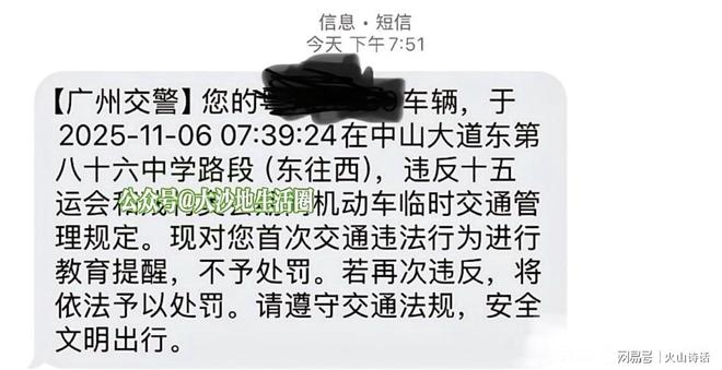 各个车主们,此次全运会限行期间,你有收到过关于违法的提醒短信吗?那是属于首违免罚的情况,还是直接就被扣分了呢?欢迎于评论区去聊聊你自身的真实过往经历,点赞并且转发出去,从而让更多的人能够避开罚款的陷阱哦!