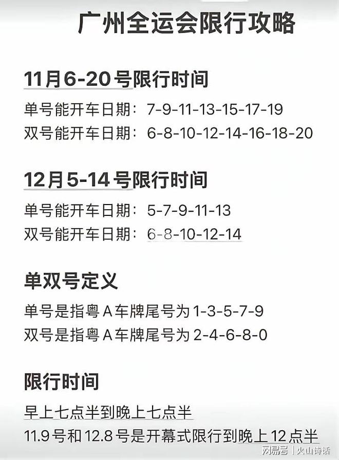 这次全运会限行分作两阶段来执行,其中一个阶段是11月6日至20日,另一个阶段是12月5日至14日,每天限行的时间为自早上7点半起始至晚上7点半截止。在11月9日以及12月8日这两个开幕式举行的当天,限行的时间会延长直至午夜24点。