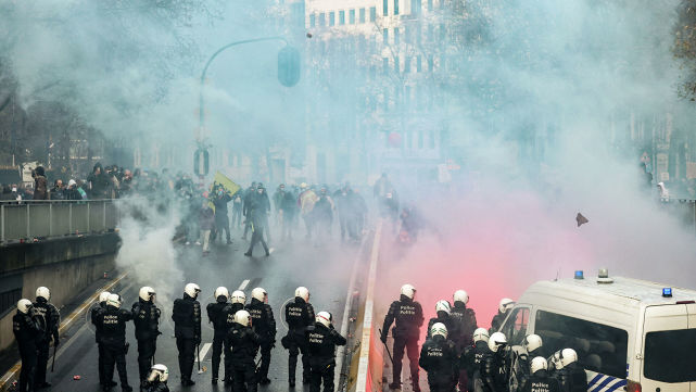 11月21日,在比利时布鲁塞尔,情况显得更为严重,有3.5万名抗议者聚集于欧洲议会大厦附近,手上挥舞着“我的身体我做主”的标语,在冲突之时,抗议者朝着警方投掷燃烧瓶以及烟花弹,而警方借助高压水炮以及催泪瓦斯驱赶人群。