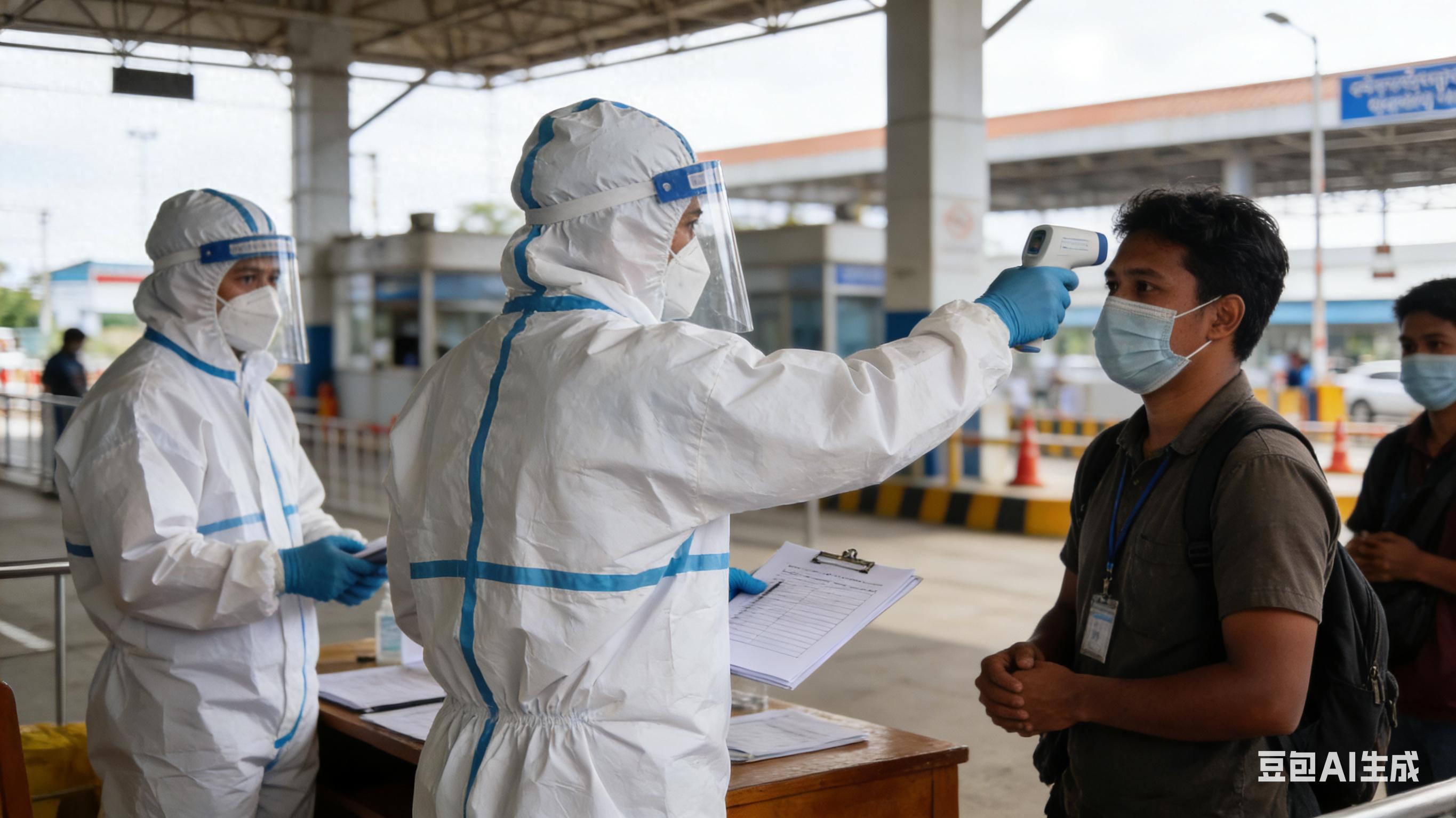 在印度跟孟加拉国交界之处的边境口岸,医护人员身着严严实实密不透风的防护服,针对每一位入境旅客开展体温检测以及健康问询工作。自2月15日起始,此地每日都要筛查数量超过5000名的旅客,其中已经有12人因为发热被送去隔离中心做进一步检测。