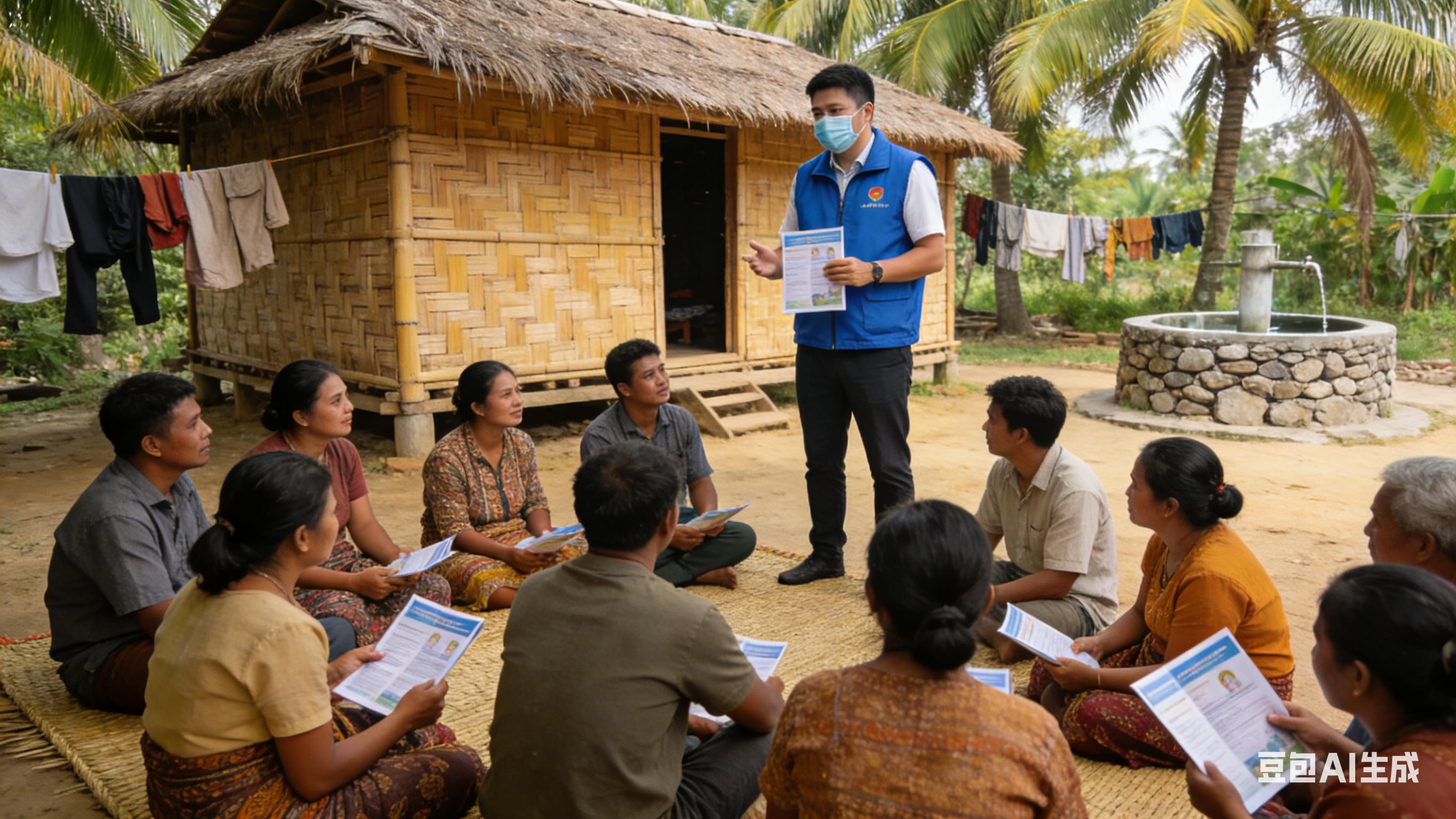 把卫生志愿者安排在泰国清迈的偏远村落,让骑着摩托车的他们挨家挨户去发放宣传单,还要用当地语言讲解尼帕病毒的早期症状,这些共有500人的志愿者,其一天过程里要走访超过2000户家庭,目的是提醒村民不要去捡拾被果蝠啃咬过的水果。