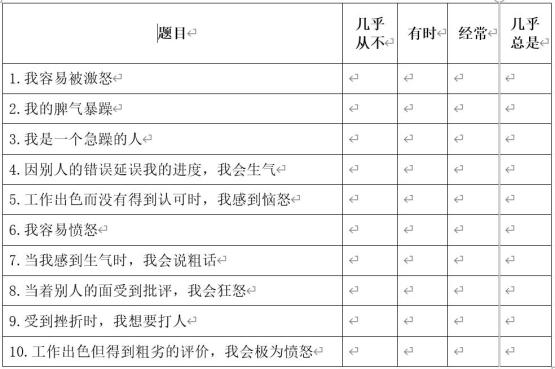 愤怒水平过高的自我评估
