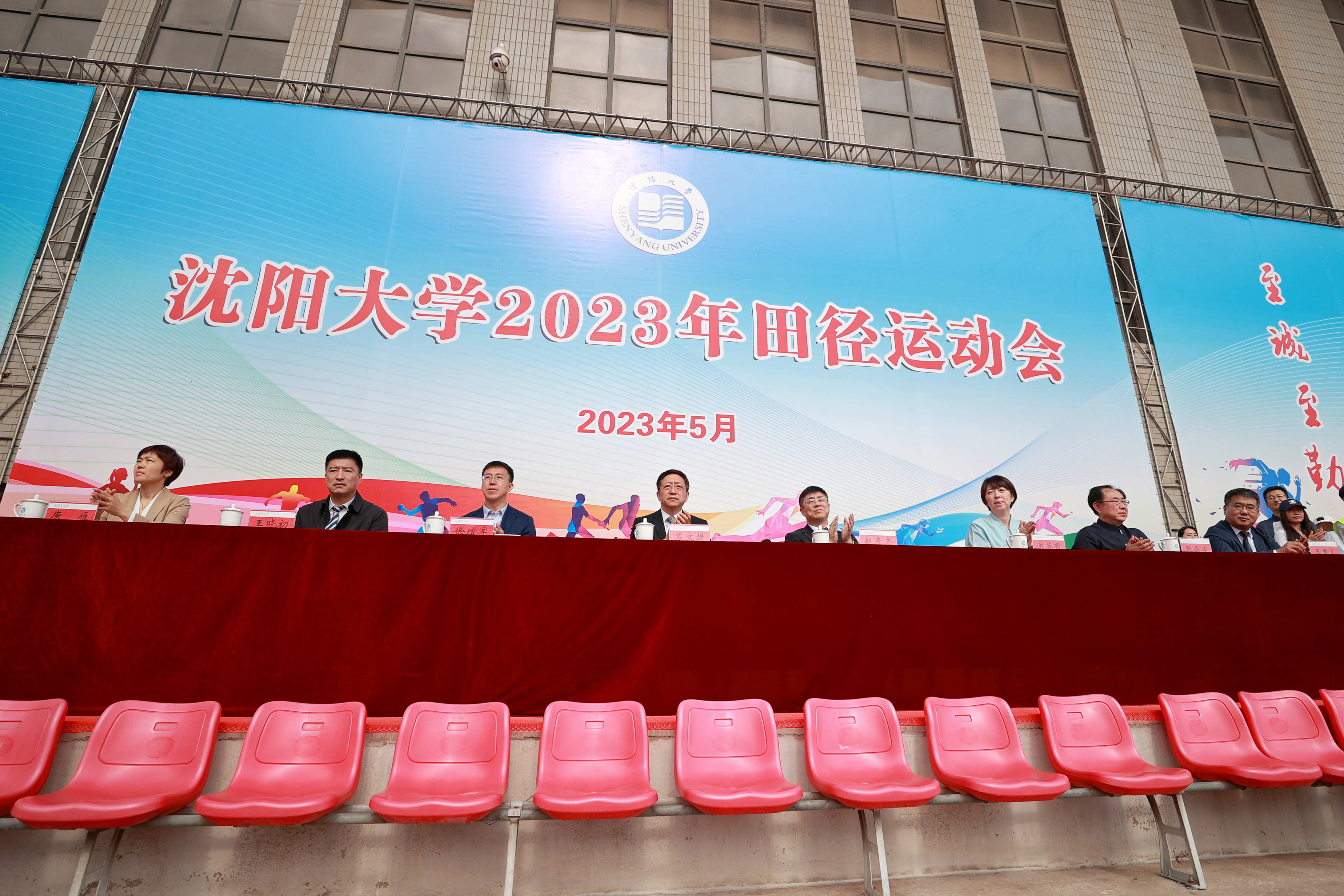 5月25日清晨七点半,沈阳大学南院体育场,已被彩旗以及横幅装饰得到外喜庆,跑道之上,十二门礼炮呈一字排列,鲜花跟气球把现场氛围烘托得极为热烈,从全校诸多学院赶来的师生超过一万人,大家早早便在看台上坐好,等着观看这场时隔五年的体育盛会再度开场,校党委书记苏文捷、校长赵彦志等领导班子成员全都到场,就连市委主题教育第十巡回指导组的副组长徐增军和成员洪英哲也来到了,副校长王淑梅站于主席台上,宣告开幕式正式启动。