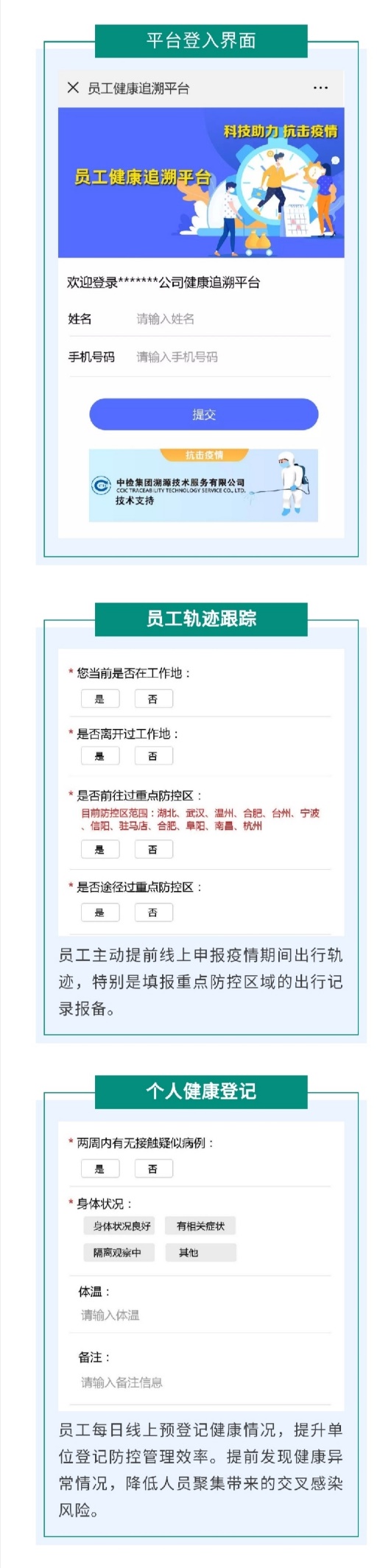 疫情尚未全然过去,复工之时风险该如何防范呢?中检集团于2月21日推出了一款免费的企业员工健康追溯平台,此行为给那些正处于纠结是否要复工状态的企业老板以及员工均提供了一条全新思路。