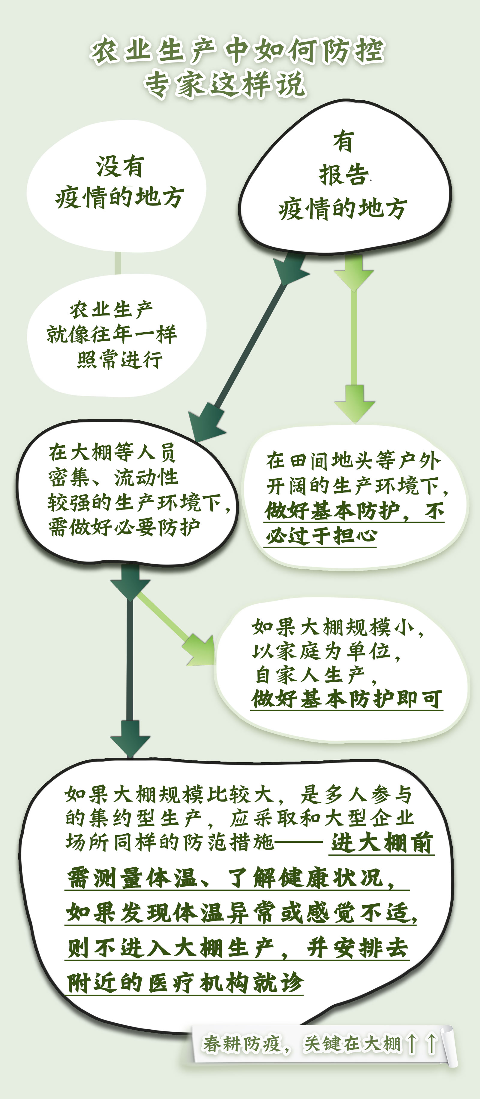 由农业农村部于2月10日紧急下发的“春耕八条”措施,为今年的春耕确定了基调。按照国务院联防联控机制新闻发布会所传达的精神,今年进行田间劳作注重的是“错峰”以及“分散”。我们不能如同以往年份那般成群聚集聊天,一定要佩戴口罩,各自开展劳作,保持安全间距。