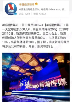 被迫采取应急举措,不少企业为了实现自救,选择了裁员以及降薪。在2020年2月复工的首日,成都的新潮传媒公司做出了裁撤500人的决定,与此同时,管理层整体降低薪酬20%。此情此景,在当时引起了广泛的探讨。
