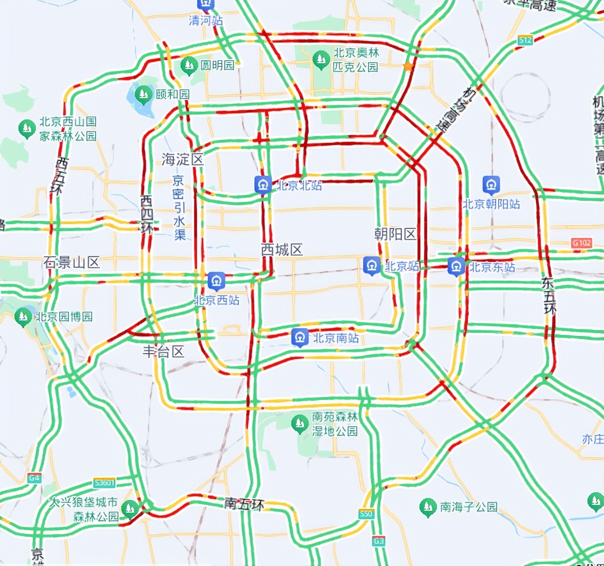 当日晚高峰时所产生的压力要高于早高峰,城区东西部存在着主要的环路,就像东四环、西四环处于北向南走向的那部分,还有北环、北四环处于西向东走向的那部分,车辆行驶起来将会极为缓慢。而涉及到联络线这一块,万泉河路、通惠河北路、丰体南路朝着出城方向的诸多区域同样是容易拥堵的各个点。