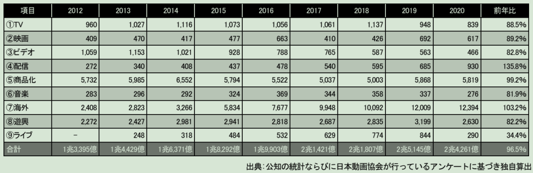 整体市场处于下滑的背景状况下,海外市场却达成了增长,调查报告虽没有进行细分,然而东映动画2021年3月决算数据表明,海外版权在欧美借助《龙珠》系列,在亚洲借助《灌篮高手》等游戏应用表现不错,受疫情影响,sVoD服务在全球范围内出现大幅增长,同时市场对成人动漫作品有了“重新发现”,海外销售额平稳上升,2020年甚至缔造了海外市场首次超越日本国内市场的纪录。这样的一种结构性的变化,这表明着日本的动画产业呢,正在加快速度,从依赖本土的那个电视,朝着全球化的网络发行方面转变。