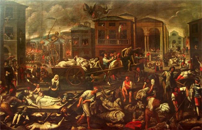 14世纪40年代,鼠疫杆菌跟着商船从克里米亚来到意大利墨西拿港,然后席卷欧洲。那时医生穿着鸟嘴状防护服,里面填充香料想要过滤空气,然而一点用都没有。欧洲有30%至60%的人口死去,伦敦、巴黎等城市尸体大量堆积,社会秩序几乎快要崩溃。