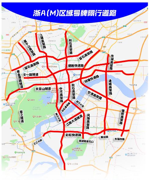 杭州绕城高速公路以内所属的全部高架路以及快速路,在工作日的早高峰时期,也就是早上7点至10点这个时间段,还有晚高峰时段,即16点至19点,浙A区域号牌全号段是被禁止驶入的。这就表明了,不论车辆号码是单号还是双号,在周一至周五的这六个小时期间,留石高架、德胜快速路、秋石高架等主要通行通道都是不可以通行的。