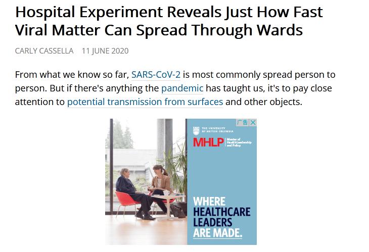 指出病毒通过物体表面移动非常容易的伦敦大学学院的微生物学家莉娜·西瑞克表明,医院内通过医护人员、病人和访客接触而转移是病毒扩散主要方式之一的接触传播,是当患者咳嗽或打喷嚏产生的飞沫落到物体表面后发生的。