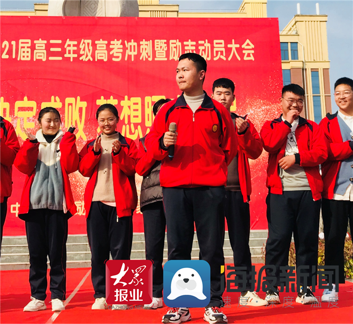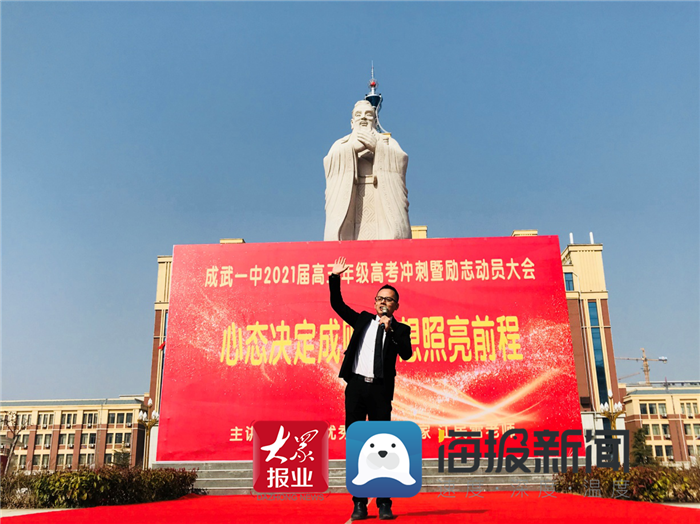 下午两点半,成武一中全体高三班主任以及学生,准时于孔子广场集合,高三年级主任孙艳玲站在队伍前方,在简短开场之后,将话筒交给了主讲人江民雷,这位励志演说家并未运用过多理论,于开场之际便说起自己当年的求学经历,借助真实故事告知台下学生,高考改变命运并非虚言。