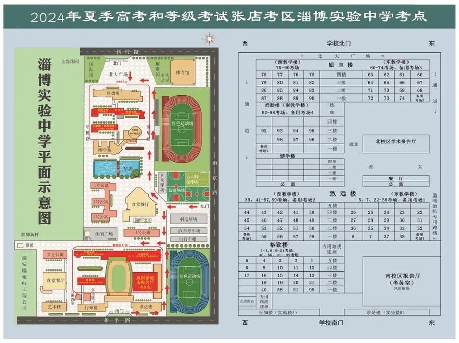 位于周村区育才路2号的淄博第六中学,是一所百年老校,其校内建筑风格古朴,周村区实验中学在周隆路1307号,因考点周边道路正在施工,所以考生要预留充足时间,两个考点都设有备用考场,具体安排可查看考点示意图。