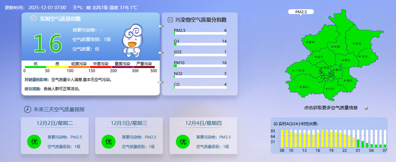 依北京市生态环境监测中心今晨7时给出的数据来看,当下实时空气质量指数为16 ,空气质量呈现出优的状态。良好的空气质量之于人们的户外活动是有利的, 然而天气变化给呼吸道带来的影响也不能够漠视 ,特别是处于流感高发的时期。