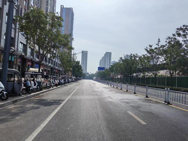 于,在那中原万达广场跟周边区域那里,新增加出来的外卖快递专门用的停车区域标线明显清晰,特别醒目,出租车专门的区域以及即停即走的区域,是有秩序地运转着,接近850米长的隔离护栏,规范着车辆通行的秩序。这样一种井然有序的局面,是因为“警城企”联动模式给建立起来了。