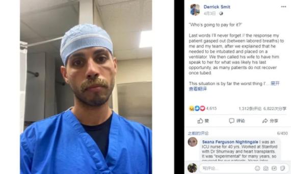 美国有一名叫德里克·史密斯的麻醉护士,他在脸书上发布了一段令人心碎的回忆,他所负责的一位重症患者,在出现呼吸困难必须插管的情况时,挣扎着问出的最后一句话并非“我能活吗”,而是“谁来为我埋单”,在这生死攸关的时刻,他担忧的居然是钱。