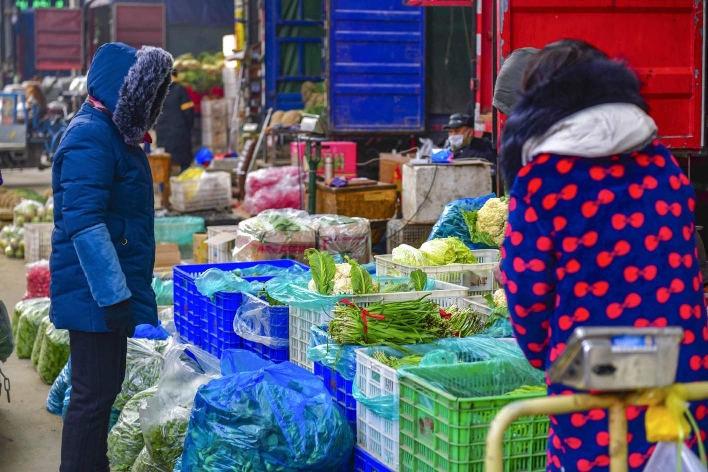 四季园菜场那儿,人相对来说多那么一点儿,青蒜、黄瓜以及西红柿被堆得满满当当的。市民李先生呢,在矮冬青青菜摊前面挑选了五分钟,他觉得那5.5元一斤的价格是能够接受的,毕竟过年期间人工成本和运输成本样样都高,上涨几毛钱倒也是挺正常的事儿。